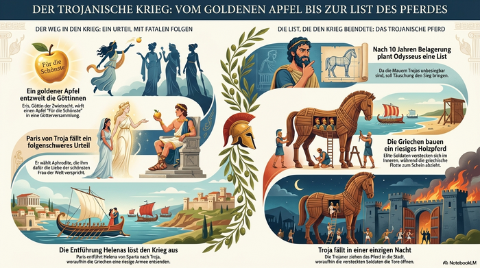 - Erstellen Sie ein Mindmap oder eine Zeitleiste der Ereignisse, die zum Ausbruch des Trojanischen Krieges führen.
