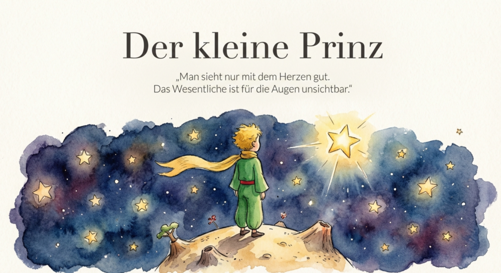 - Abschied: Der Prinz „kehrt zurück“ – offen für verschiedene Deutungen; der Pilot findet Wasser und die Erinnerung wird zur inneren Stern-Orientierung.