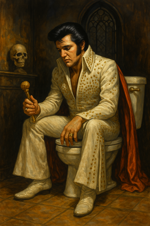 In a foggy corner of Graceland, a rumor echoed louder than the chords of “Hound Dog”. It wasn't about blue suede shoes or heartbreak hotels, but about the porcelain sanctuary Elvis revered more than any stage — his gilded bathroom throne. Legend said it wasn't just where the King of Rock and Roll rested — it was where he released visions.