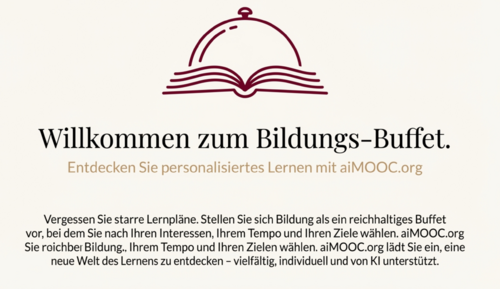 aiMOOC.org bietet ein vielfältiges Spektrum an Lernmöglichkeiten, vergleichbar mit einem großen Buffet. In diesem Artikel werden die verschiedenen Elemente eines aiMOOCs und ihre Parallelen zu einem kulinarischen Erlebnis metaphorisch dargestellt.