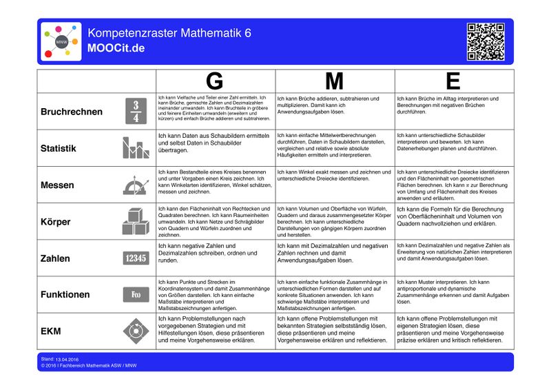 Mathematik - Kompetenzraster Materialnetzwerk auf MOOCit