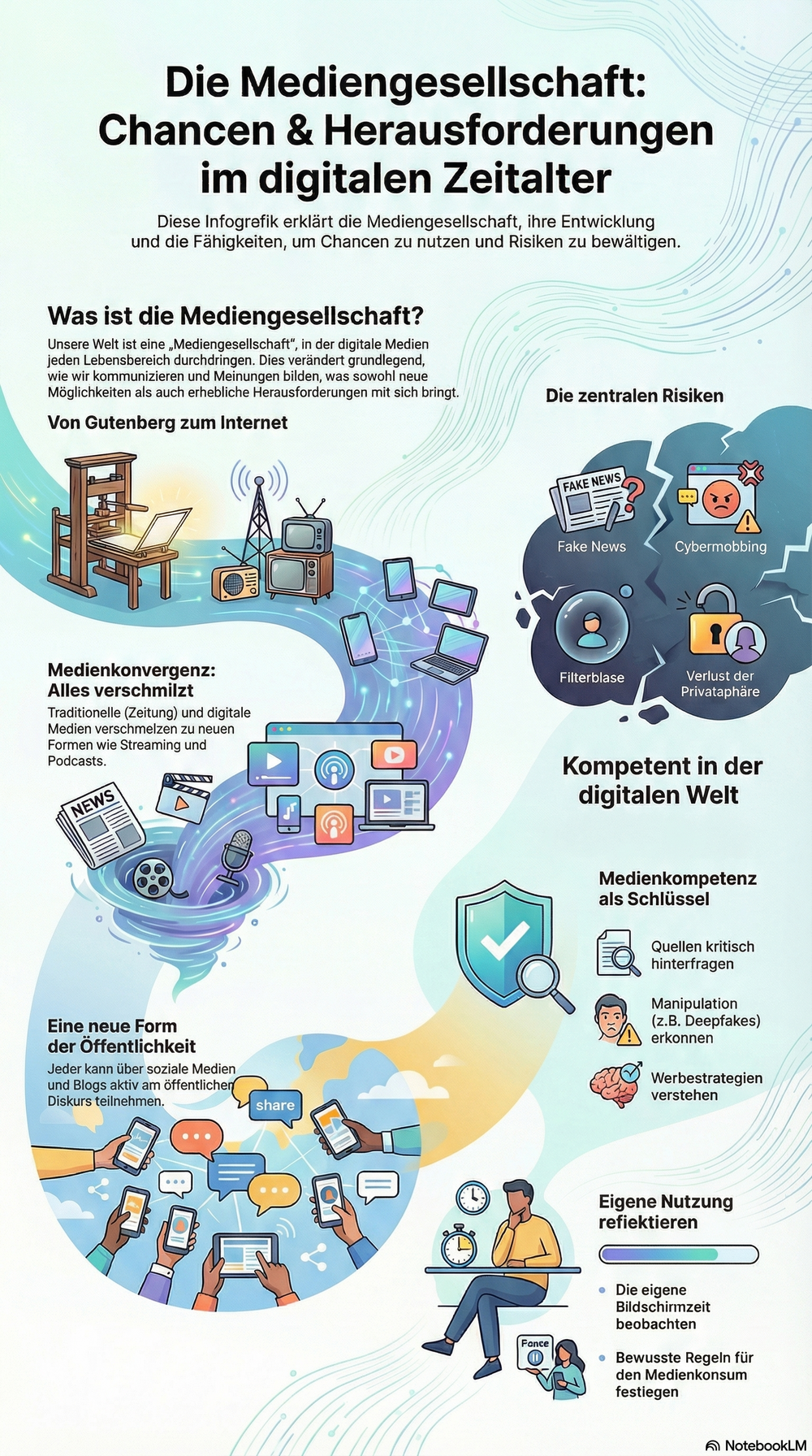In der Mediengesellschaft ist Medienkompetenz von entscheidender Bedeutung. Bildungseinrichtungen stehen vor der Herausforderung, Schülerinnen und Schüler auf ein Leben in einer von Medien dominierten Welt vorzubereiten. Dies umfasst den kritischen Umgang mit Medieninhalten, das Verständnis für Urheberrechte, Datenschutz und die Fähigkeit, Fake News zu erkennen.