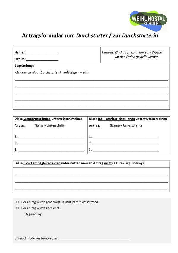 - Abgabe der Anträge: Freitag vor den Ferien